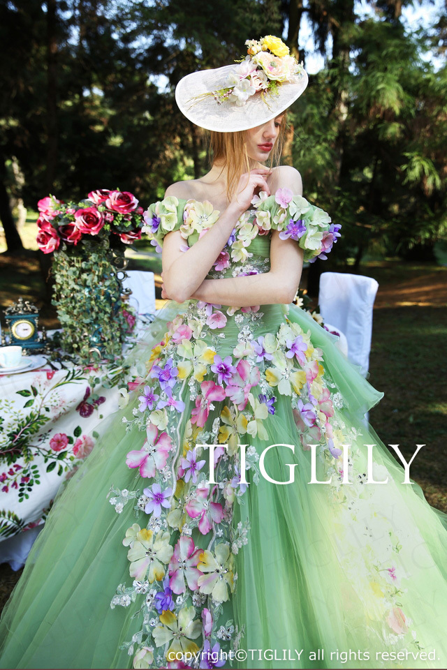 お花、フラワー、フリル、オフショルダー、バックリボン |