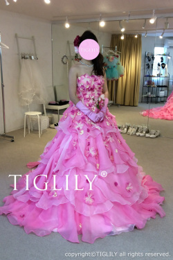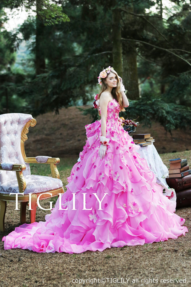 流れるようなフリルスカートと大きなバックリボンがポイント。